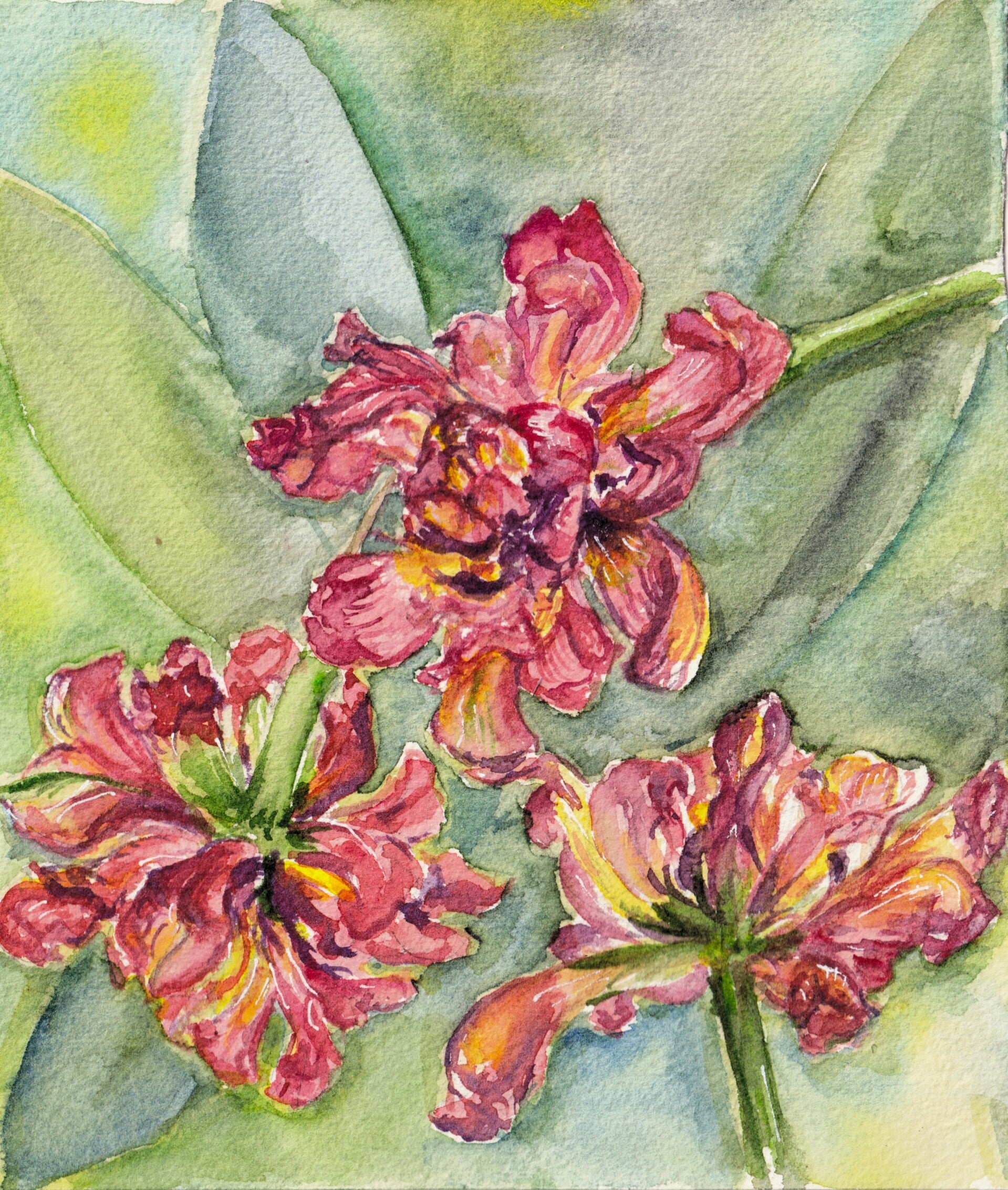 Each paintings contains a series of 10 originals, with the same basic concept and design but variations big and small made anew and by my own hands.